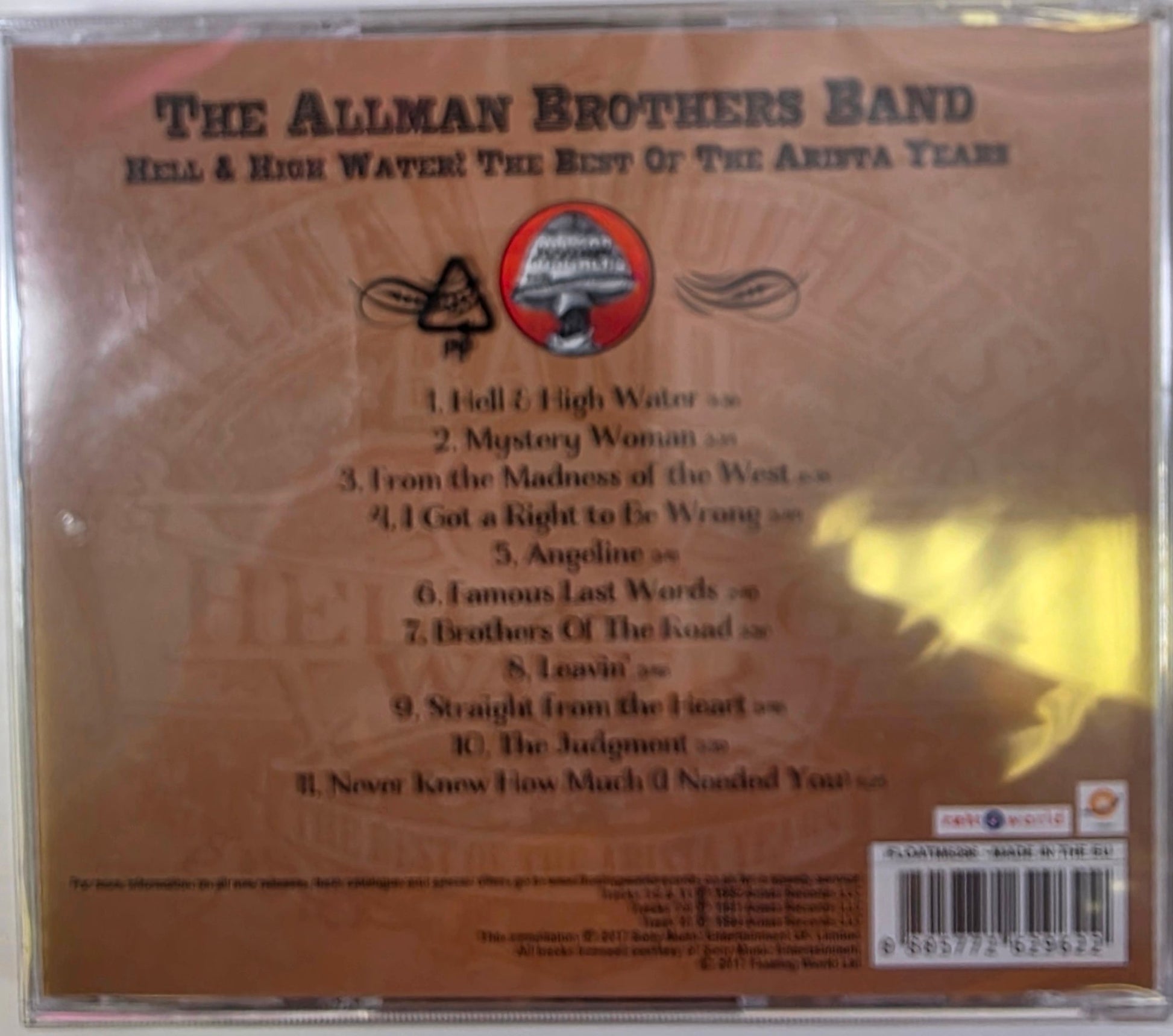 The Allman Brothers Band presents 'Hell and High Water: The Best of the Arista Years', a compilation of some of their finest work. Known for their unique blend of blues, jazz, and country, the Allman Brothers Band is a staple in the rock genre. This CD showcases their talent during the Arista years.