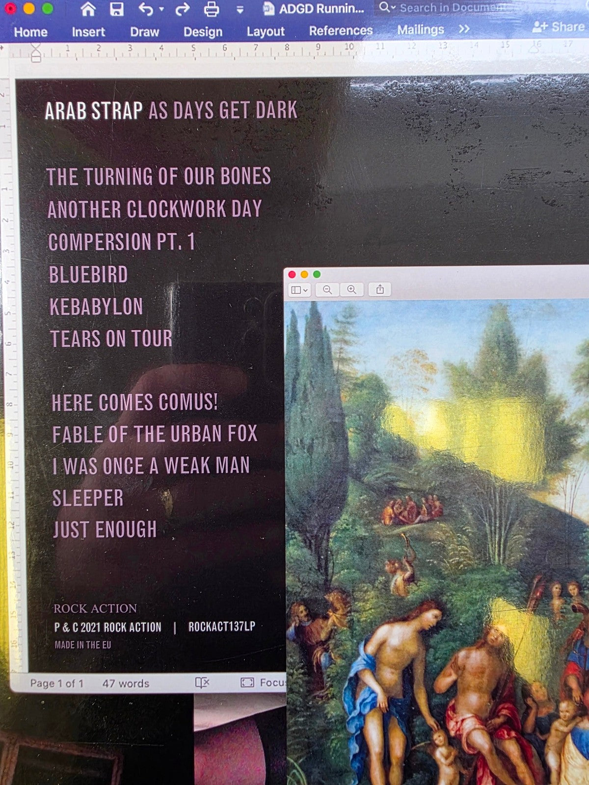 Explore the profound sounds of Arab Strap with their album 'As Days Get Dark', released in 2021 under the Rock Action label. This LP offers a blend of captivating lyrics and distinctive melodies characteristic of the band’s unique style. A must-have for fans of alternative and indie music.
