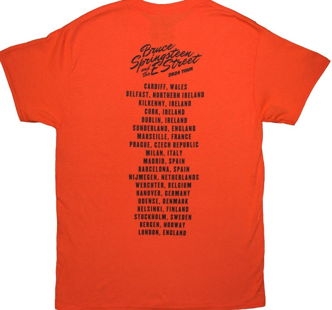 Bruce Springsteen T-Shirt Tour '24 River Font Orange Ex-Tour Unisex Size XL