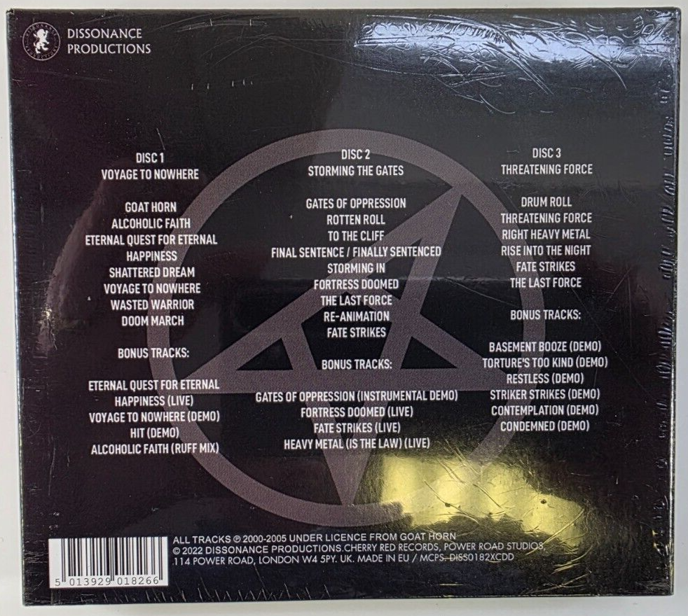 The Goat Horn "Voyage To Nowhere" 3 x CD Boxset Compilation is a deluxe edition release from Dissonance Productions in 2022. This multicoloured box set features three CDs in a cardboard sleeve with mint condition inlays and a digipak design. The compilation showcases the heavy metal sound of Goat Horn, highlighting their guitar, bass guitar, and electric guitar instrumentation across a runtime of 21643 seconds. This rock and metal collection is a must-have for fans of the 2000s heavy metal era, making it a perfect addition to any carnival or birthday occasion.