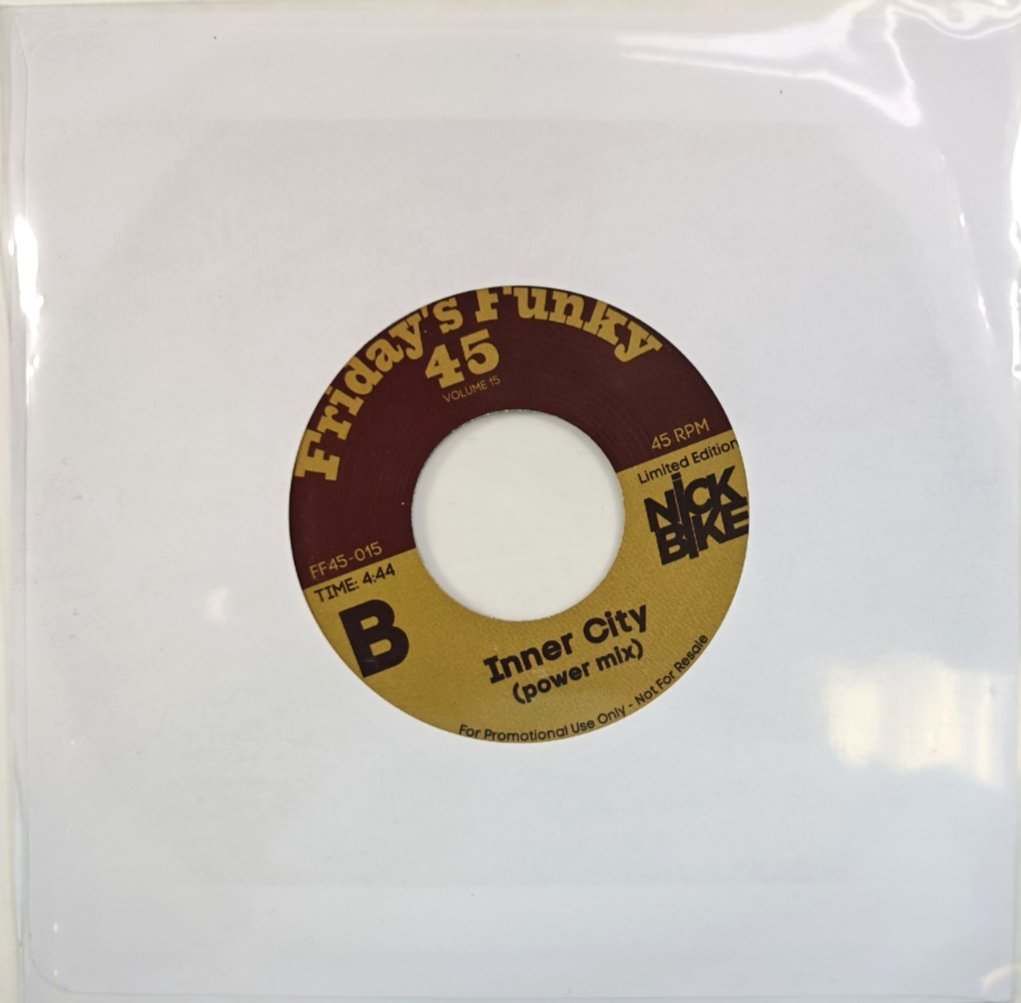 A transatlantic collab that flips classic hip-hop and soul into dancefloor dynamite. Jim Sharp and Nick Bike rework Inner City with razor-sharp edits and heavyweight funk, delivering two versions that hit hard in DJ sets and boutique bins alike. Pressed on limited 7″ vinyl by Friday’s Funky 45, this release (FF45 015) is a must-grab for crate diggers chasing modern funk with vintage swagger.