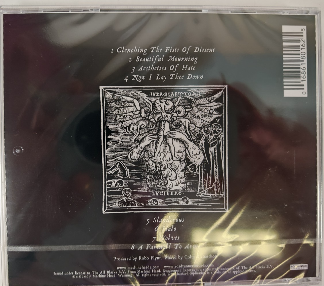 Machine Head’s critically acclaimed 2007 album The Blackening is a towering slab of modern thrash, blending technical precision with raw emotional power. Produced by Robb Flynn and mixed by Colin Richardson, this release marked a creative peak for the band, featuring expansive compositions, politically charged lyrics, and blistering guitar work. Includes the Grammy-nominated single “Aesthetics of Hate” and fan favourites like “Halo” and “Now I Lay Thee Down”. Widely regarded as one of the defining metal albums of the 2000s.