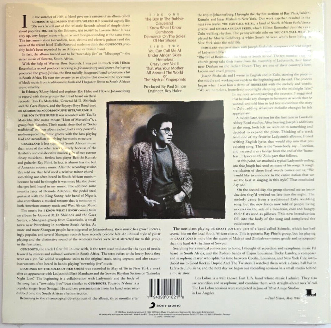 Paul Simon – Graceland LP Album Vinyl record limited clear reissue 2020 on Sony