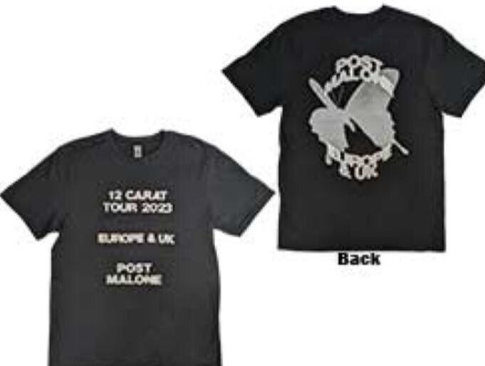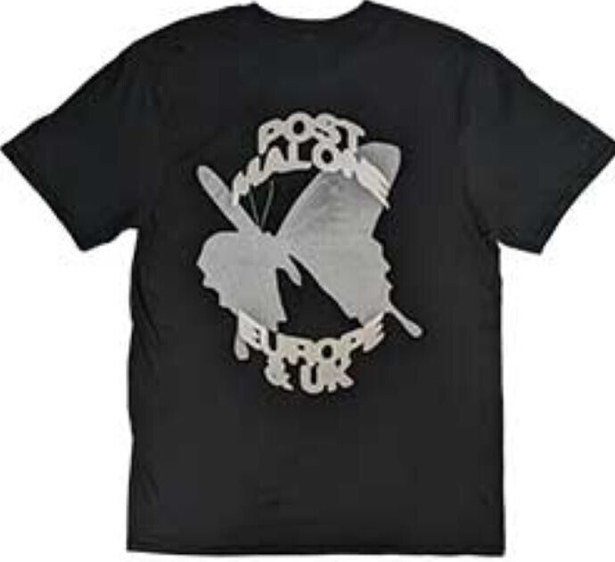 Post Malone Unisex T-Shirt: Butterfly Logo 2023 Tour with Back Print – Black, Large