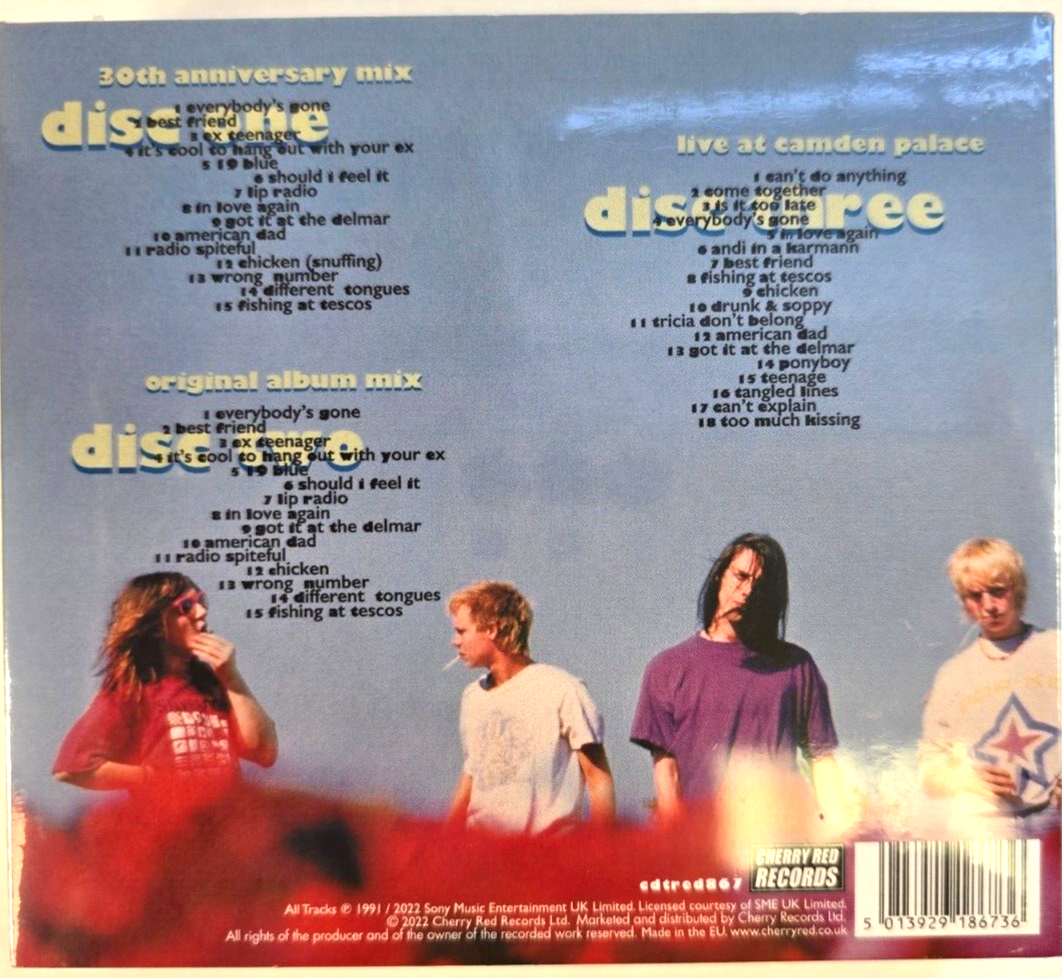 Senseless Things – The First Of Too Many CD Boxset x 3 CD remastered Deluxe 2022Get ready to rock with this amazing Senseless Things boxset featuring their album "The First Of Too Many". This deluxe edition includes three CDs remastered for your listening pleasure. The album is a compilation of the best of indie rock, britpop, and alternative rock from the 1990s, making it a must-have for any music lover. The boxset comes in a cardboard sleeve and includes a booklet with mint (M) inlay condition. The CD grading is also mint (M), and the colour of the boxset is multicoloured. This collector's edition is sealed and features a compilation of the band's best songs. The album is in English and was released in 2022 under the record label Cherry Red. The catalogue number is cdtred867. This boxset is perfect for carnival or birthday occasions and is a great addition to any music collection.30th Anniversary Mix 1-1 Everybody’s Gone1-2 Best Friend1-3 Ex Teenager1-4 It’s Cool To Hang Out With Your Ex1-5 19 Blue1-6 Should I Feel It1-7 Lip Radio1-8 In Love Again1-9 Got It At the Delmar1-10 American Dad1-11 Radio Spiteful1-12 Chicken (Snuffing)1-13 Wrong Number1-14 Different Tongues1-15 Fishing At TescosOriginal Album Mix 2-1 Everybody’s Gone2-2 Best Friend2-3 Ex Teenager2-4 It’s Cool To Hang Out With Your Ex2-5 19 Blue2-6 Should I Feel It2-7 Lip Radio2-8 In Love Again2-9 Got It At The Delmar2-10 American Dad2-11 Radio Spiteful2-12 Chicken2-13 Wrong Number2-14 Different Tongues2-15 Fishing At TescosLive At Camden Palace 3-1 Can't Do Anything3-2 Come Together3-3 It's Too Late3-4 Everybody's Gone3-5 In Love Again3-6 Andi In A Karmamann3-7 Best Friend3-8 Fishing At Tescos3-9 Chicken3-10 Drunk & Soppy3-11 Tricia Don't Belong3-12 American Dad3-13 Got It At The Delmar3-14 Ponyboy3-15 Teenage3-16 Tangled Lines3-17 Can't Explain3-18 Too Much Kissing
