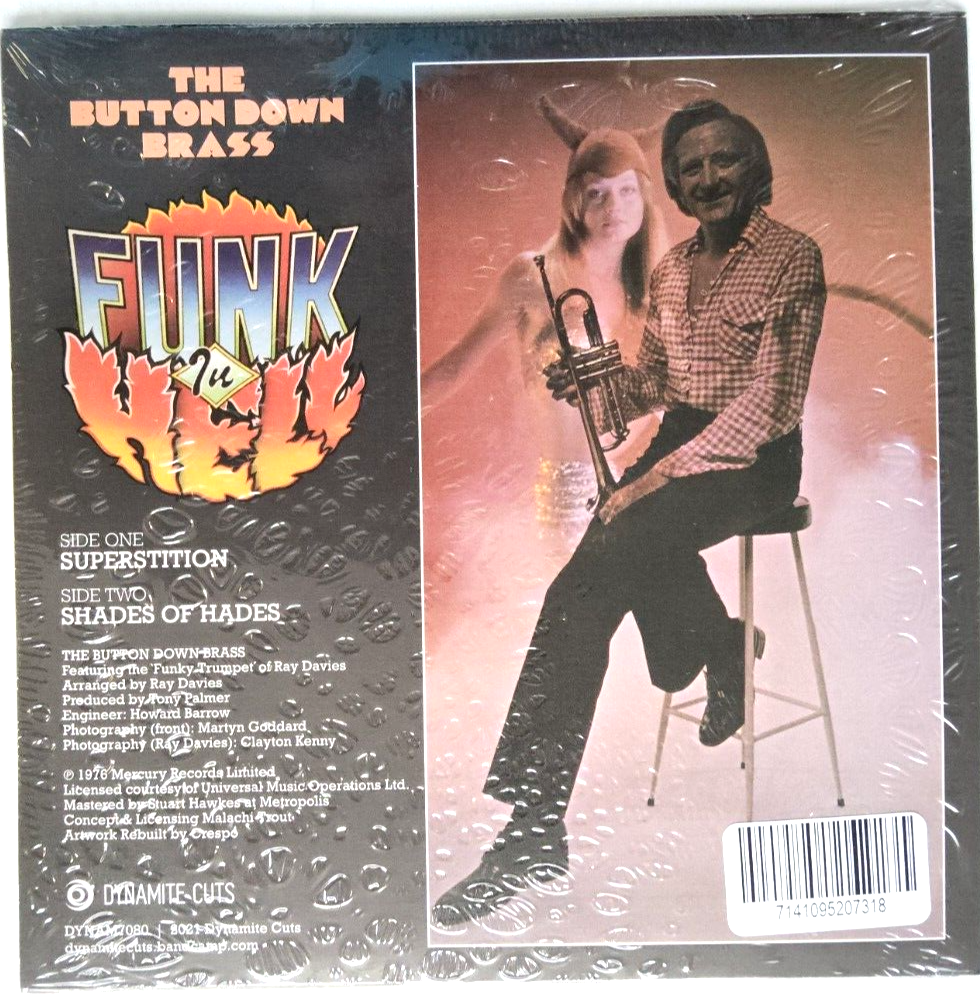 A funk-fueled instrumental reimagining of Stevie Wonder’s classic, Superstition by The Button Down Brass is a bold, brassy blast of cinematic soul. Originally featured on their 1976 album Funk in Hell, this version—reissued by Dynamite Cuts—brings together tight horns, groovy basslines, and Ray Davies’ signature trumpet work. The B-side, “Shades of Hades,” is a moody, spy-funk gem that rounds out this essential 7" for collectors of library funk and rare groove.