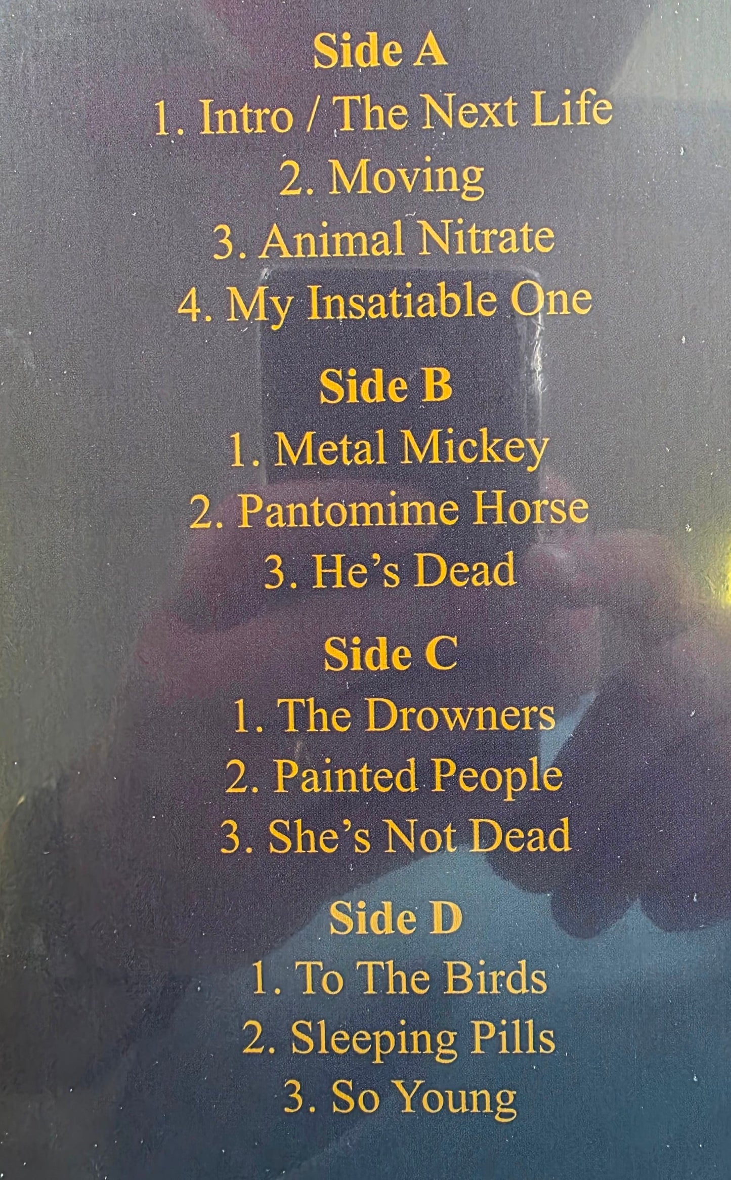 - Side A: Intro / The Next Life, Moving, Animal Nitrate, My Insatiable One