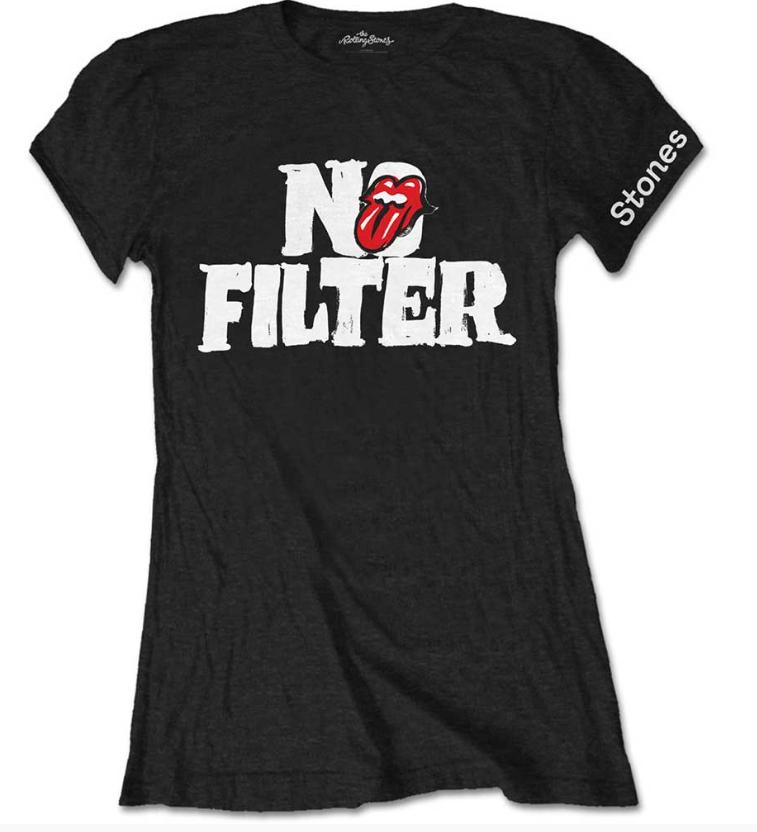 THE ROLLING STONES LADIES TSHIRT: NO FILTER HEADER LOG SIZE MEDIUM BLACK NEW