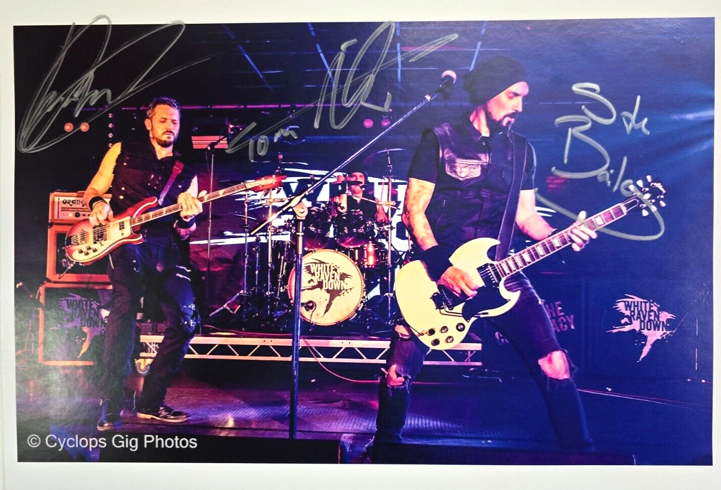 White Raven Down Hand Signed presentation size A4 on glossy print by the band