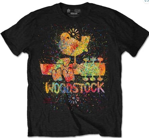 WOODSTOCK UNISEX T-SHIRT SPLATTER MOTIF NEW SIZE MEDIUM BLACK OFFICIAL MERCH NEW